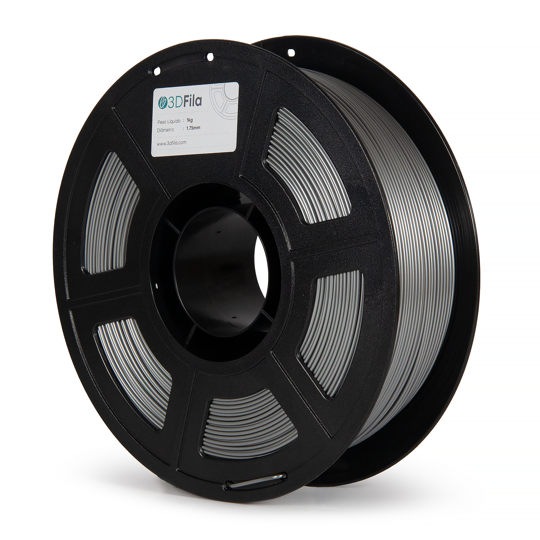O Filamento PETG XT Prata 1,75mm possui cor opaca, com brilho forte e tonalidade intensa, sendo amplamente usado na indústria.