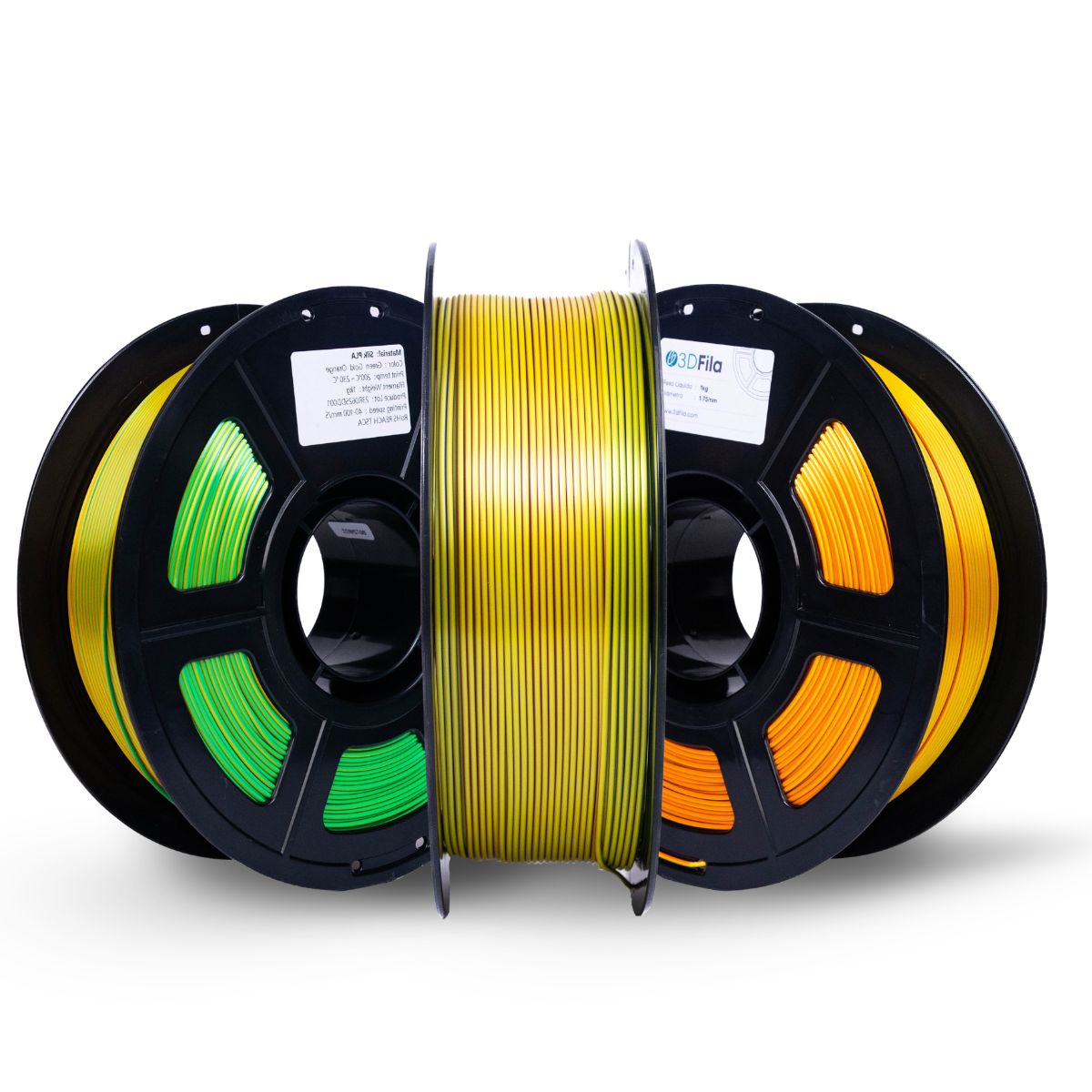 Filamento PLA Silk Tricolor Verde, Dourado e Laranja