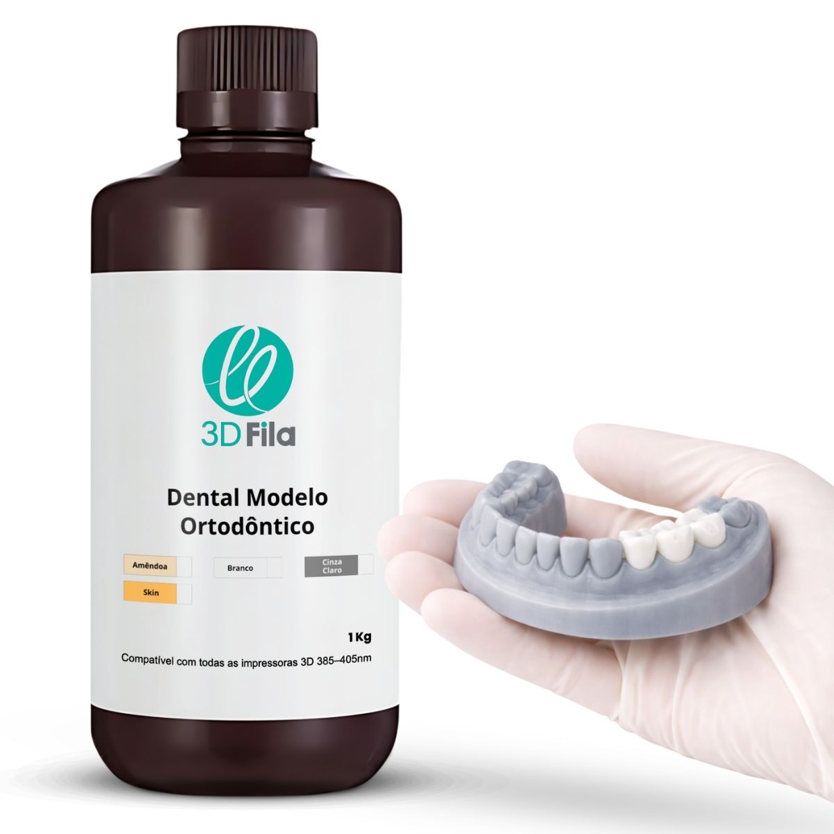 A Resina 3D Fila Dental Modelo Ortodôntico Cinza Claro é indicada para a impressão de modelos ortodônticos e de estudo, garantindo alta precisão dimensional, superfícies lisas e resistência adequada para manipulação clínica.