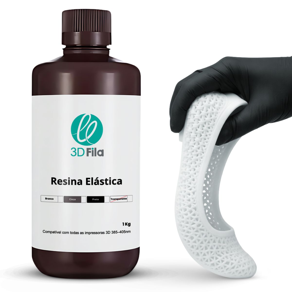 Sua fórmula de base fotopolimerizável de 405 nm garante impressões consistentes, com ótima aderência entre camadas, baixo odor e excelente recuperação elástica, mesmo após múltiplas deformações.